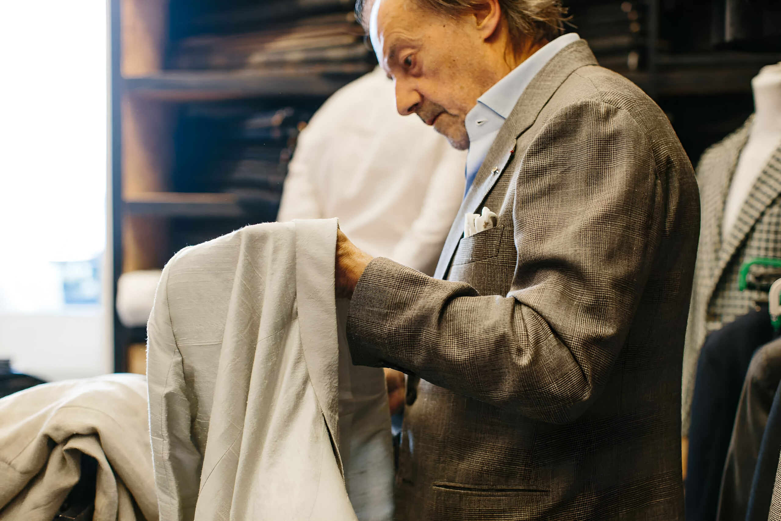 Luigi Dalcuore ha fondato la sartoria negli anni Sessanta, diventando interprete autorevole della tradizione sartoriale napoletana. Un artigiano eccelso.